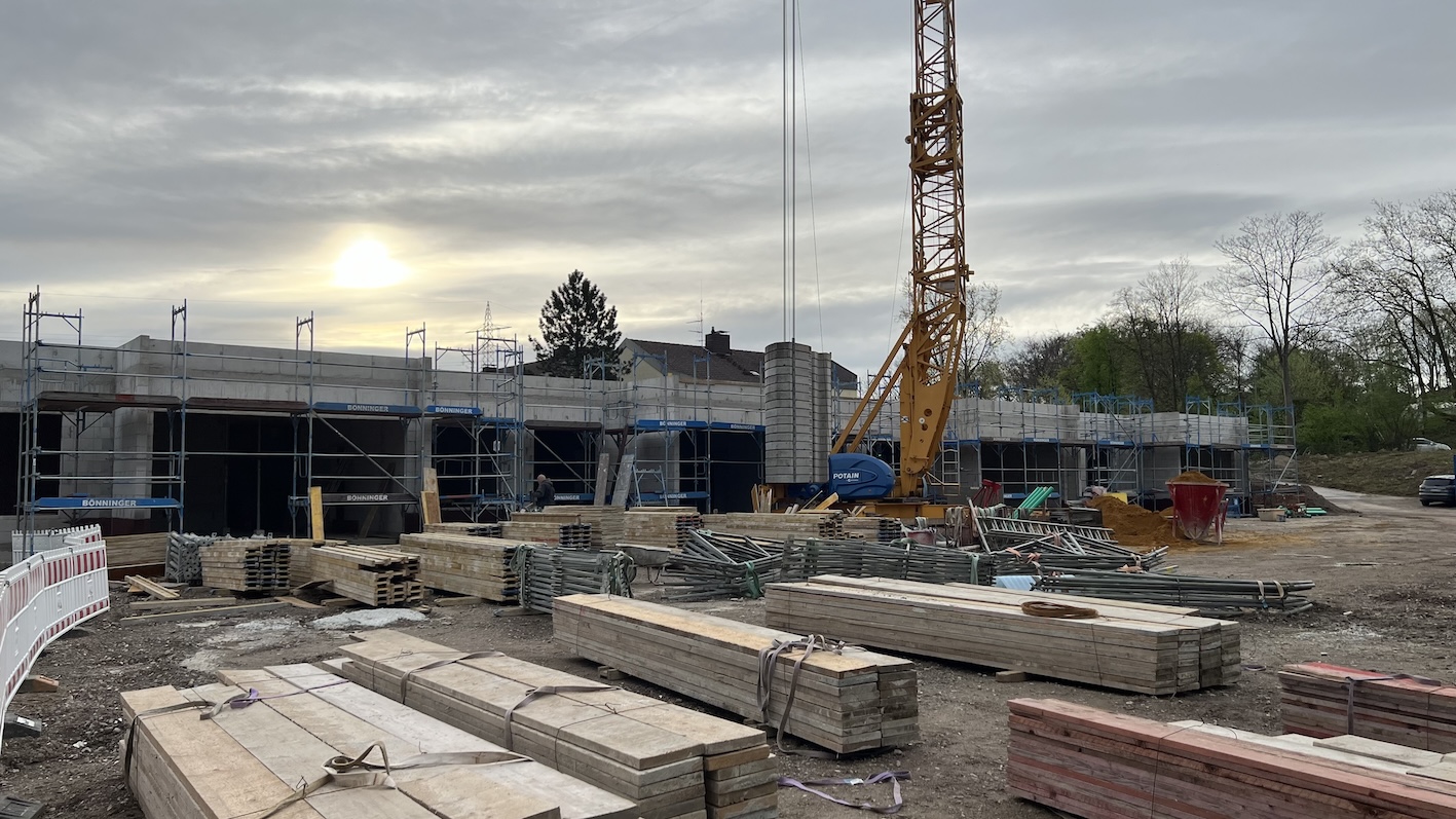 Die Arbeiten an der Hubertstraße im Essener Stadtteil Frillendorf nehmen sichtbare Gestalt an. Die Rohbauarbeiten sind nun abgeschlossen. Im Auftrag der Stadt Essen realisieren Dr. Schramm Michael Partner hier den Neubau einer vierzügigen Kindertagesstätte.