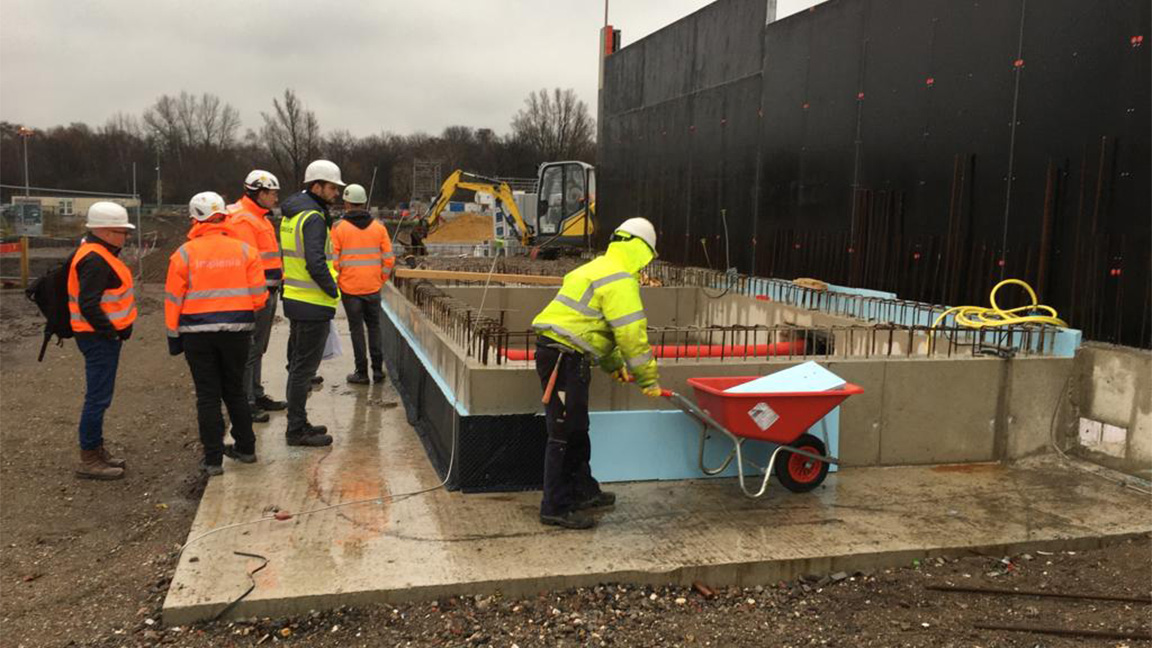 Bei einem gemeinsamen Baustellentermin mit den verantwortlichen Projektleitern der schweizerischen Implenia AG überzeugen sich Dr. Schramm Michael Partner von dem rasanten Fortschritt der Arbeiten. Am Raffineriestandort der Ruhr-Oel GmbH in Gelsenkirchen-Horst entsteht unter ganz besonderen Bedingungen dieser Neubau für die Werksfeuerwehr.