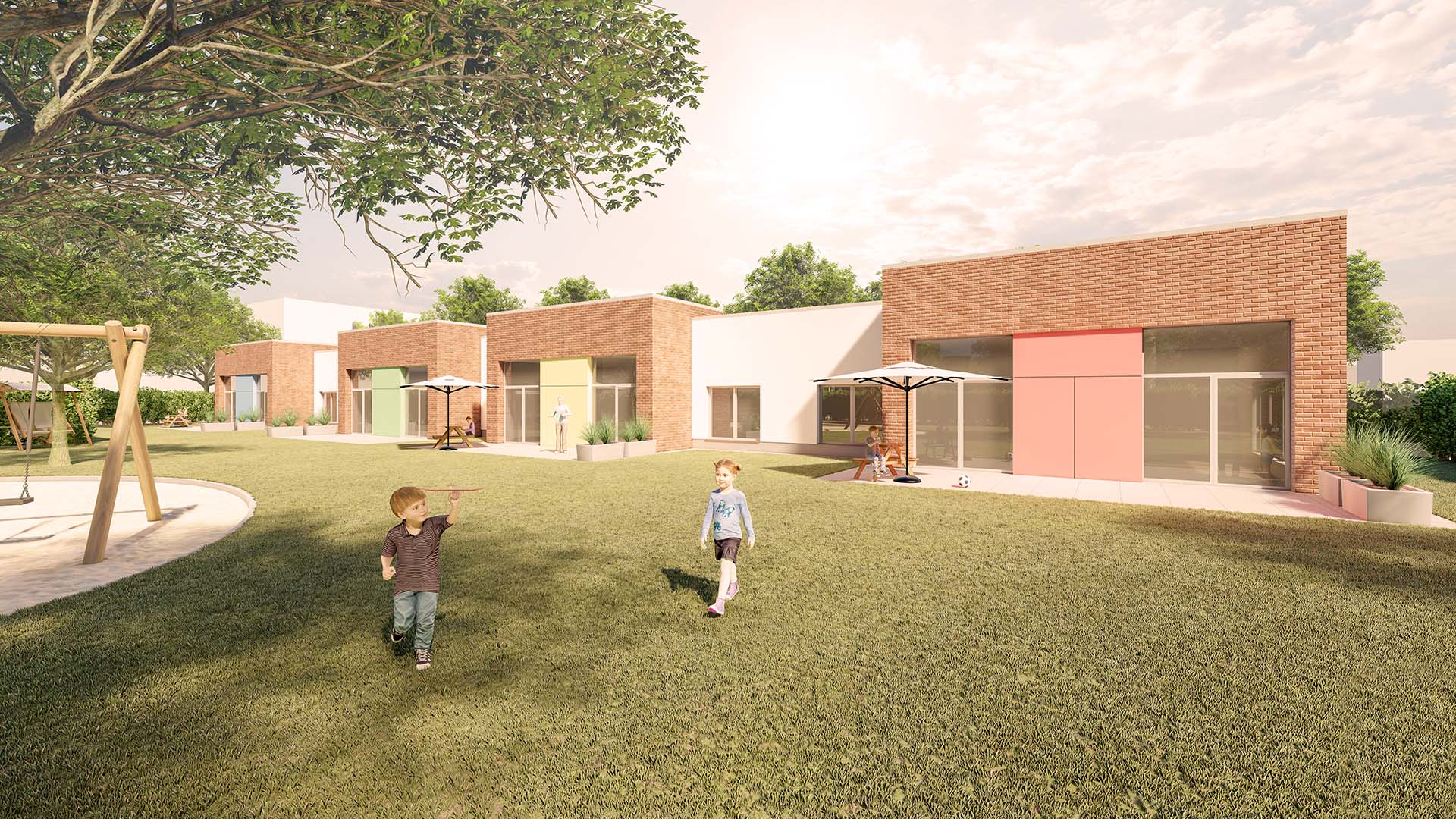 Im Auftrag der Stadt Essen realisieren Dr. Schramm Michael Partner den Neubau einer vierzügigen Kindertagesstätte im Essener Stadtteil Frillendorf. Die Einrichtung ist für die Betreuung von Kindern ab dem vierten Lebensmonat bis zum Eintritt in die Grundschule geplant. Seit heute rollt nun der Bagger.