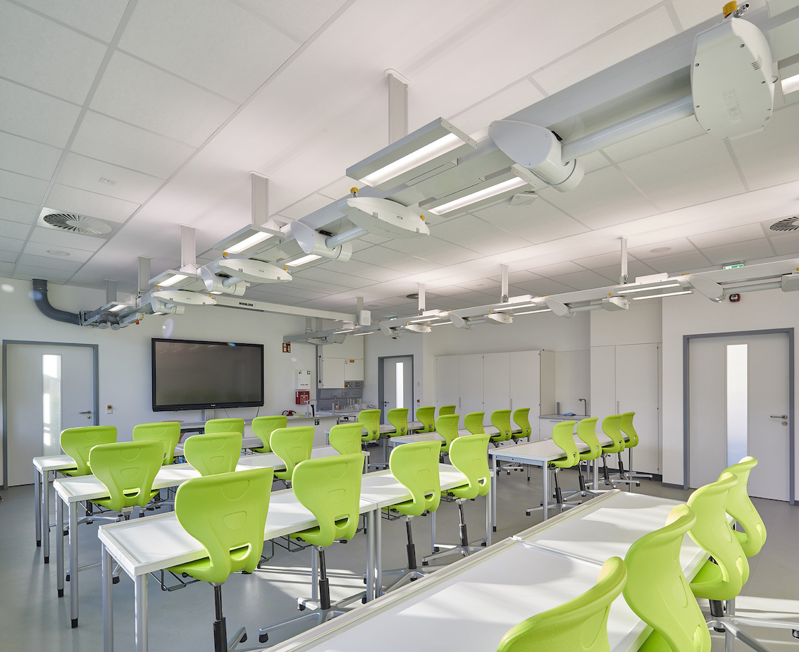 Dr. Schramm Michael Partner stellen den Erweiterungsneubau der Geschwister-Scholl-Realschule in Essen-Borbeck vor. Der Neubau umfasst im Erdgeschoss eine Mensa für 150 Schülerinnen und Schüler sowie im Obergeschoss zwei neue und nach den neusten Standards geplante und ausgestattete Chemieräume. Die barrierefreie Anbindung an das Bestandsgebäude ermöglicht es Schülerinnen und Schülern, die auf einen Rollstuhl angewiesen sein sollten, selbständig die neuen Räumlichkeiten zu erreichen und zu nutzen.