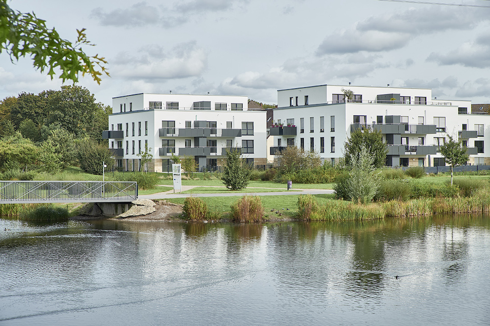 Am Nordufer des Niederfeldsees in Essen-Altendorf entstanden 42 attraktive Neubauwohnungen. Die drei Mehrfamilienhäuser sind von Dr. Schramm und Partner im Auftrag der Essener Allbau GmbH entworfen und geplant worden.