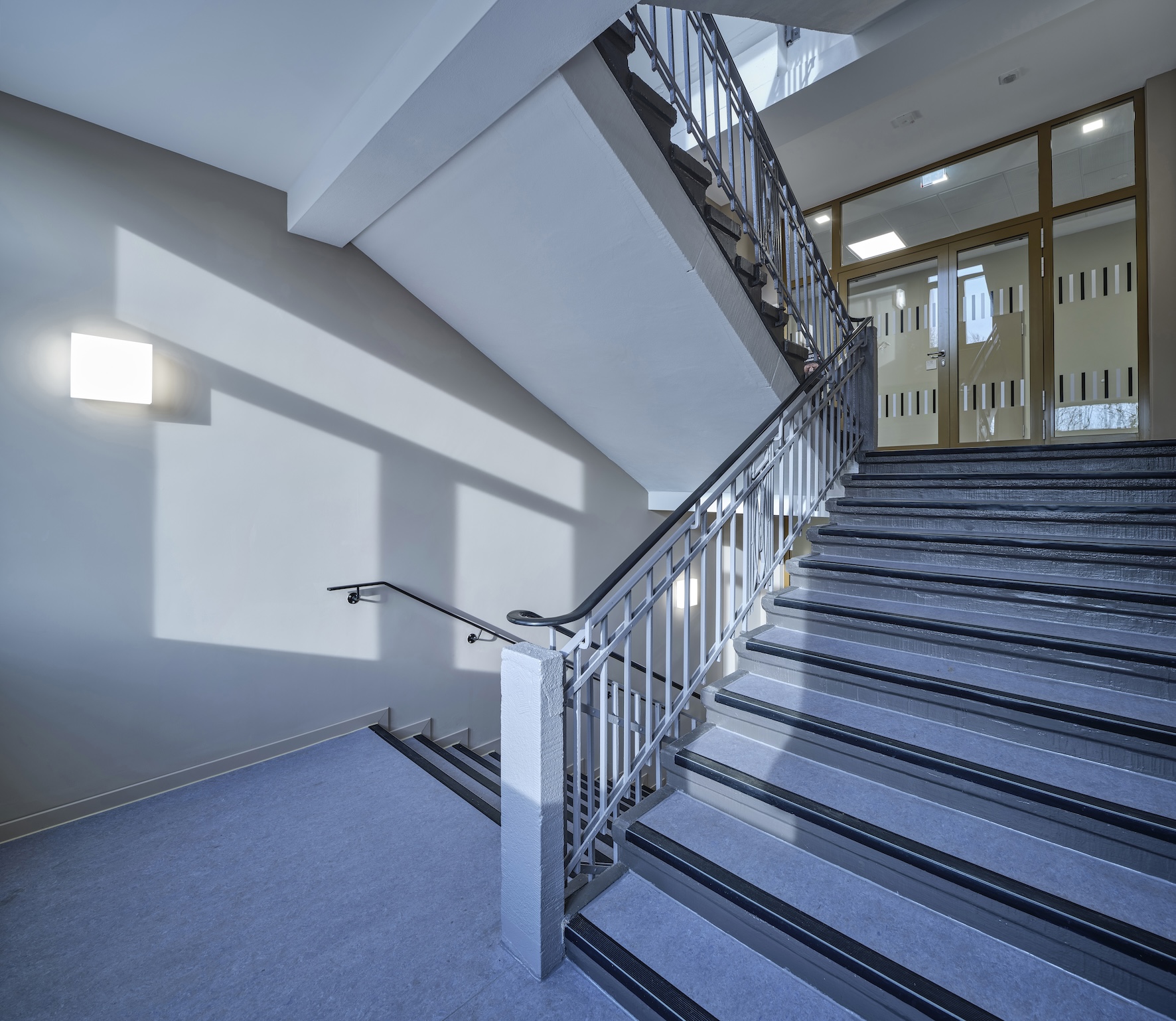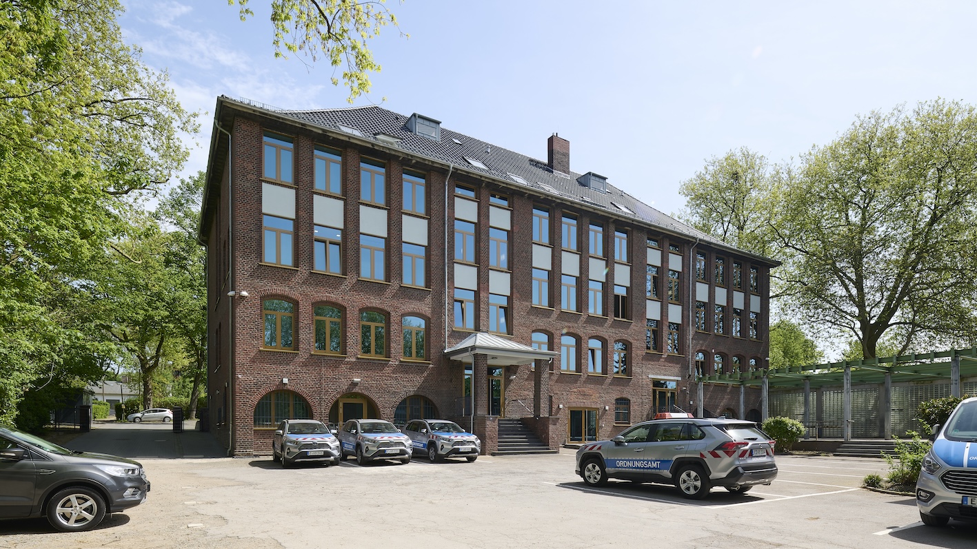 In dem ehemaligen Schulgebäude aus dem Jahr 1911 sind nach einer vollständigen Kernsanierung und Umplanung die verschiedenen Bereiche des Ordnungsamtes der Stadt Essen untergebracht. In dem Haus befindet sich neben großzügigen Büro-, Besprechungs- und Schulungsräumen zudem die neue Leitstelle der Einsatzleitung. Von hier aus werden die Fahrradstreifen sowie die Präsenzstreifen des Kommunalen Ordnungsdienstes im Essener Stadtgebiet koordiniert. Den Essener Bürgerinnen und Bürger wird die Möglichkeit gegeben ihre persönlichen Anliegen in der Ordnungsbehördlichen Anlaufstelle im Erdgeschoss vorzutragen.