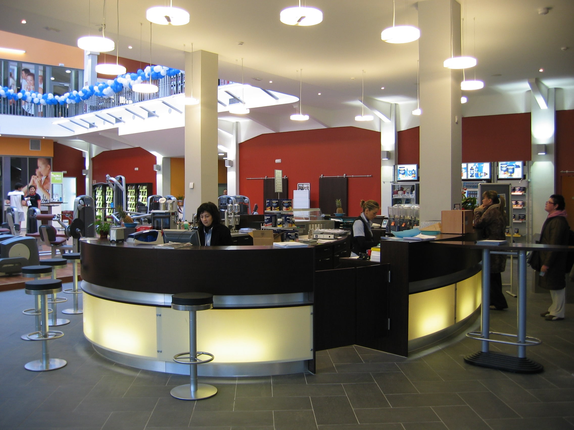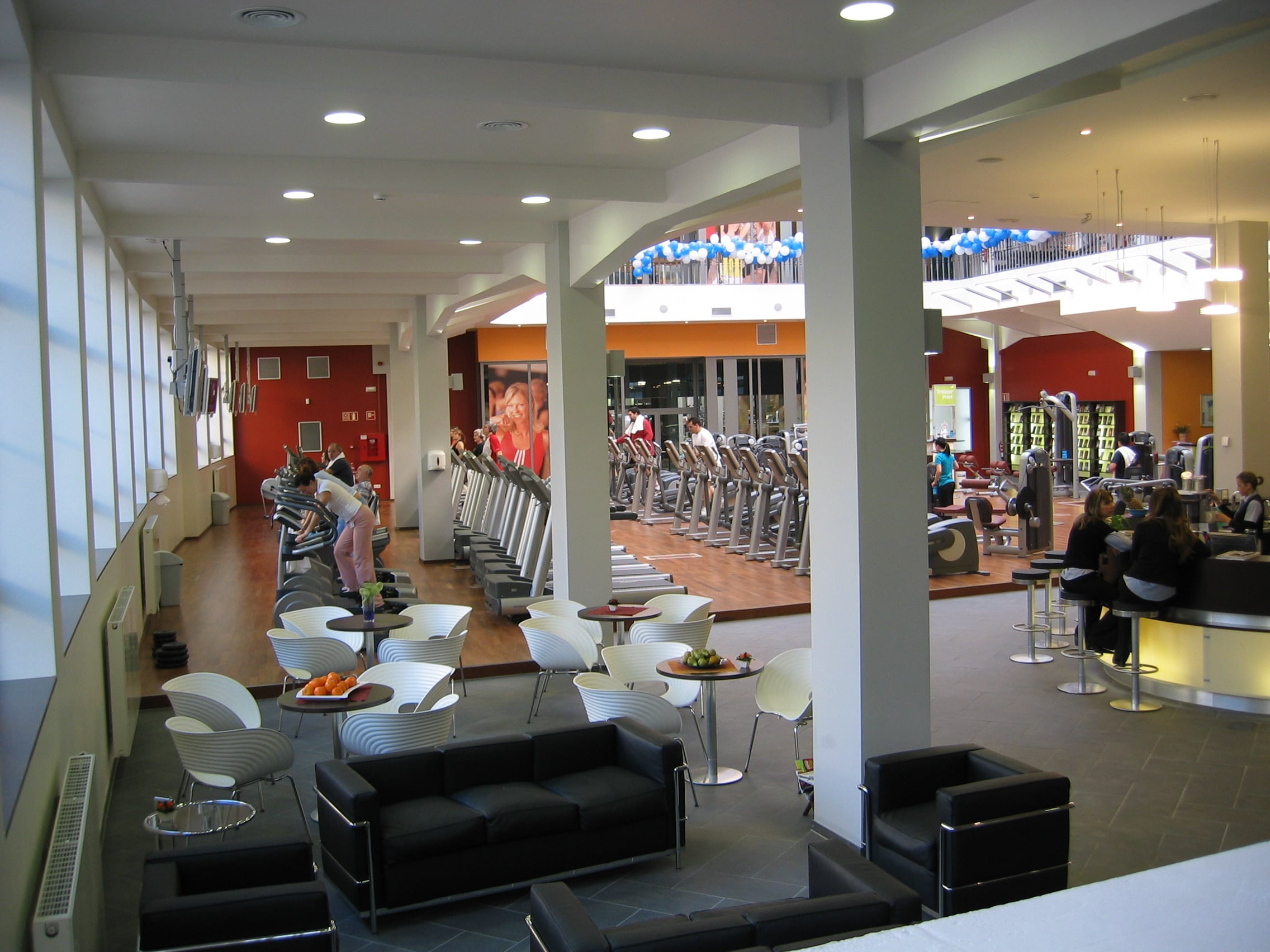 Dass Fitnessstudio umfasst großzügige Umkleide-, Dusch- und Wellnessbereiche inkl. Sauna und Dampfbädern, ausreichend Flächen für Gerätetraining, Indoorcycling, Freihanteltraining und geschlossene Bereiche für Gruppen oder Yogakurse.